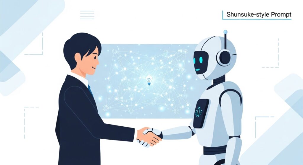 シュンスケ式プロンプトとは?AIに質問させる逆転の発想で、"良い質問ができない"悩みを解決。具体的な使い方、テンプレート、対話例を交え、AIを思考のパートナーに変える方法を解説。深津式・七里式との違いも分かります。