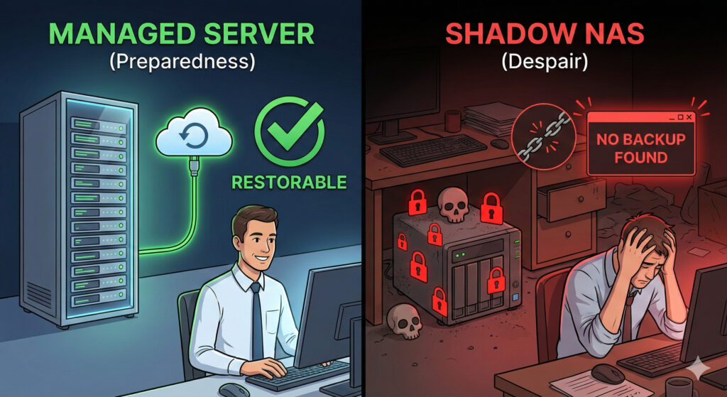 「重要なデータは情シスの管理下に置く」。これは統制(ガバナンス)の問題ではなく、有事の際に会社を蘇生させるための必須条件です。資産管理は、防御だけでなく、レジリエンス(復旧能力)の第一歩でもあるのです。