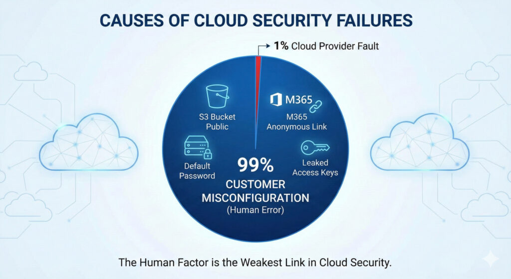 本稿では、クラウドセキュリティ事故の99%を占める「設定ミス」の正体と、それを防ぐための「責任共有モデル」および自動診断ツール(CSPM/SSPM)について解説します。