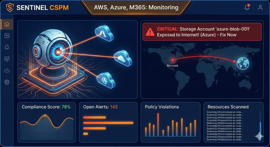 - 主にIaaS (AWS/Azure/GCP) の設定を監視します。「S3が公開されている」「セキュリティグループでSSH(22)が全開放されている」などを自動検知します。