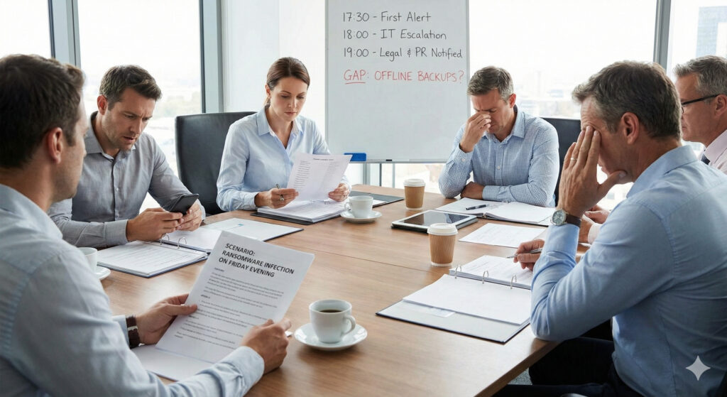「広報担当の連絡先が古い」「弁護士と夜間に連絡がつかない」「サイバー保険の証券番号がどこにあるかわからない」。