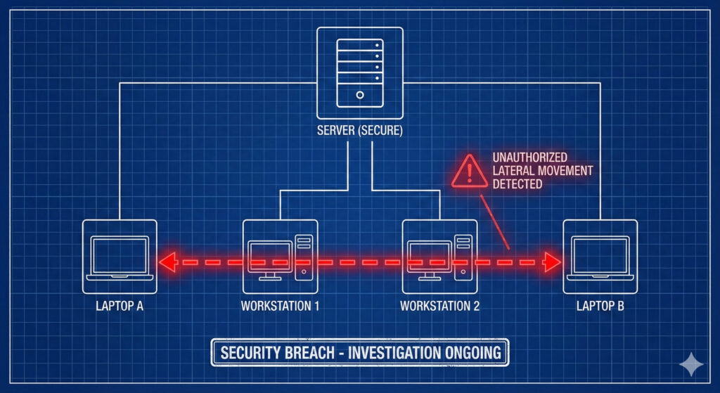 経理部のPCが、人事部のPCに接続しに行っている……それはマルウェアが感染拡大(ラテラルムーブメント)を狙っている兆候です。