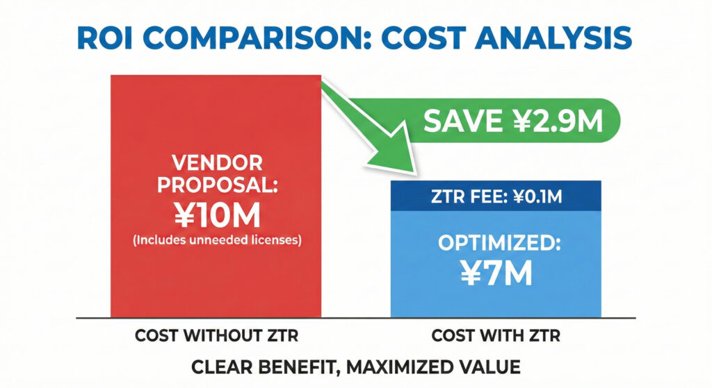 大手ファームに依頼すれば、同等のレビューで数百万円が相場です。ZTRラボは、組織を持たないギルド型運営により、中間マージンを極限まで排除。「中堅企業が支払える現実的な価格」で、トップティアの知見を提供します。