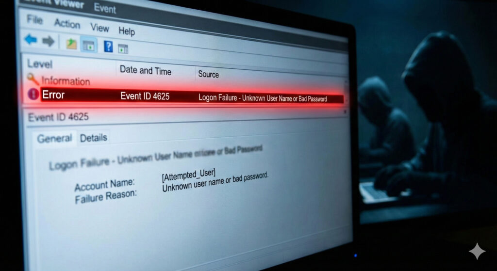 中堅・成長企業の情シス責任者は、まず「イベントID 4625(ログオン失敗)」のアラート設定から始めてください。