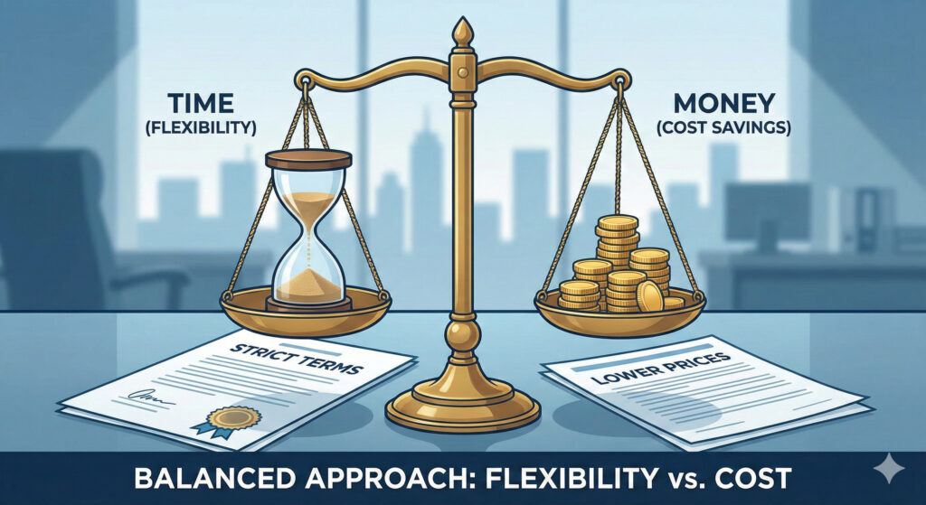 「単年度契約」ではなく「3年契約(または5年契約)」を結ぶ代わりに、「契約期間中の値上げなし」または「大幅なディスカウント」を確約させるのです。